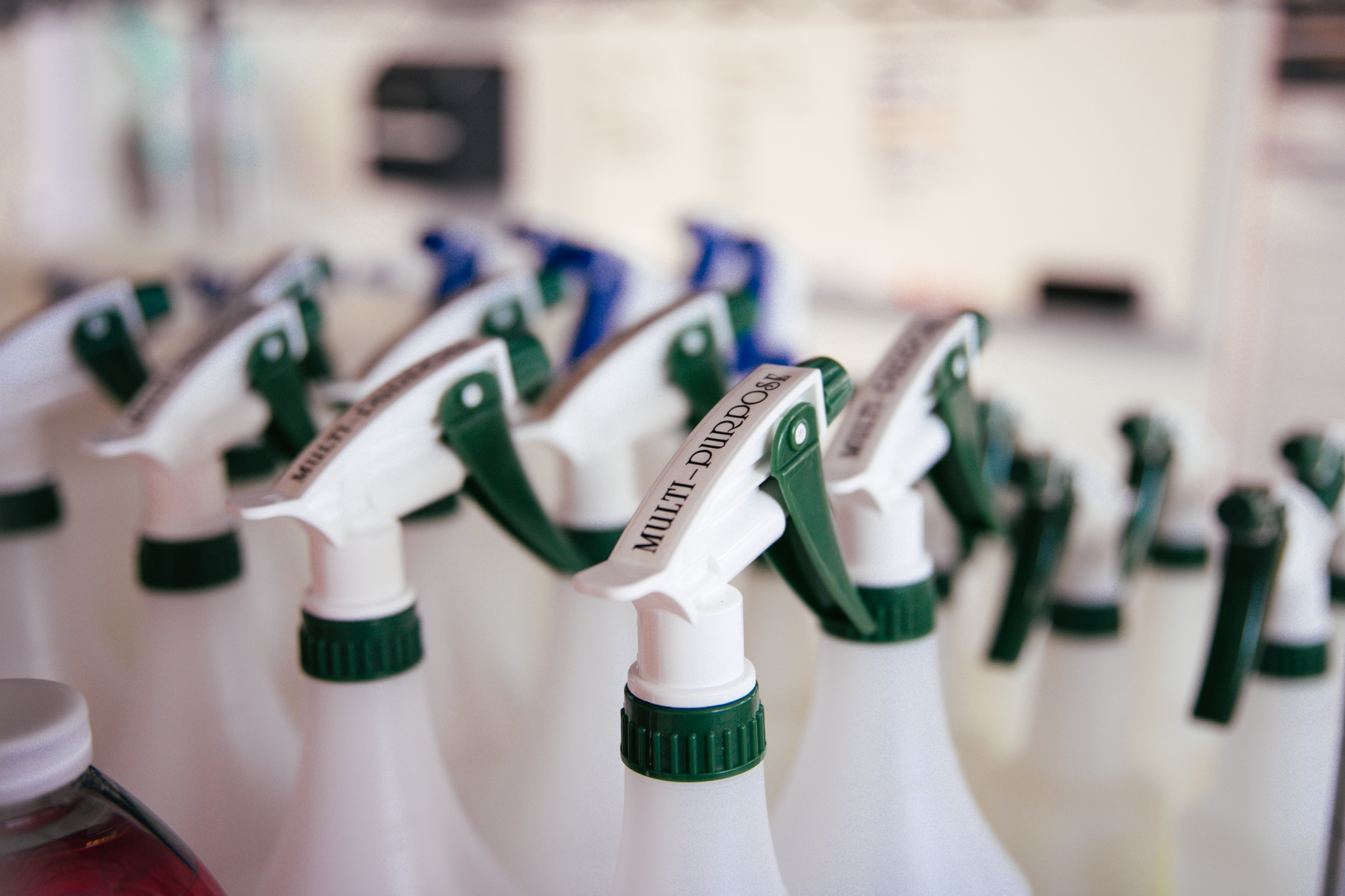 Clean and disinfect vanities, fixtures, decor and outside of cabinets